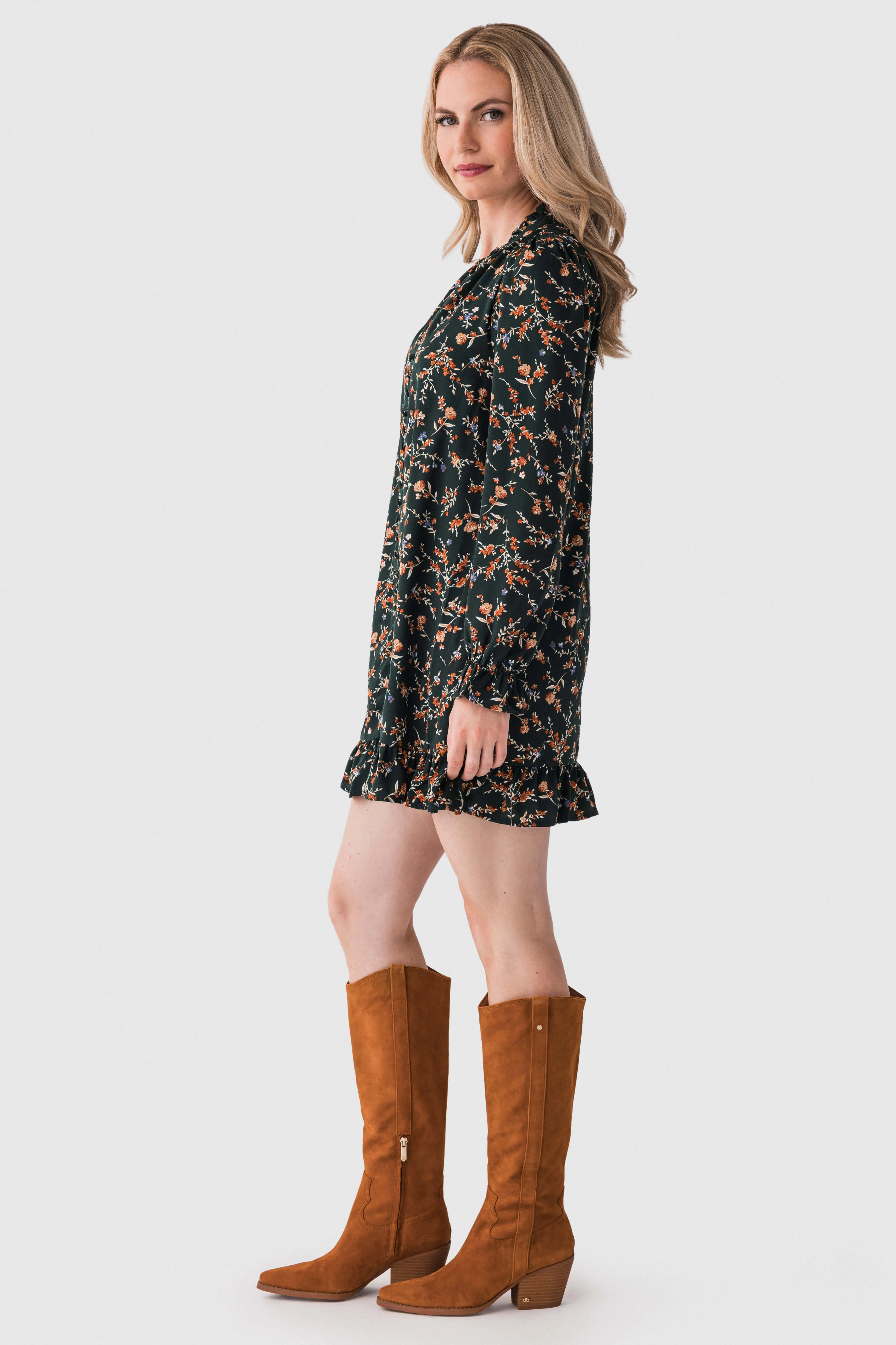 This En Creme Floral Long Sleeve Mini Dress has fall parties pending... Paired with cute boots and a simple bag, you can't argue- this dress knows a good time!