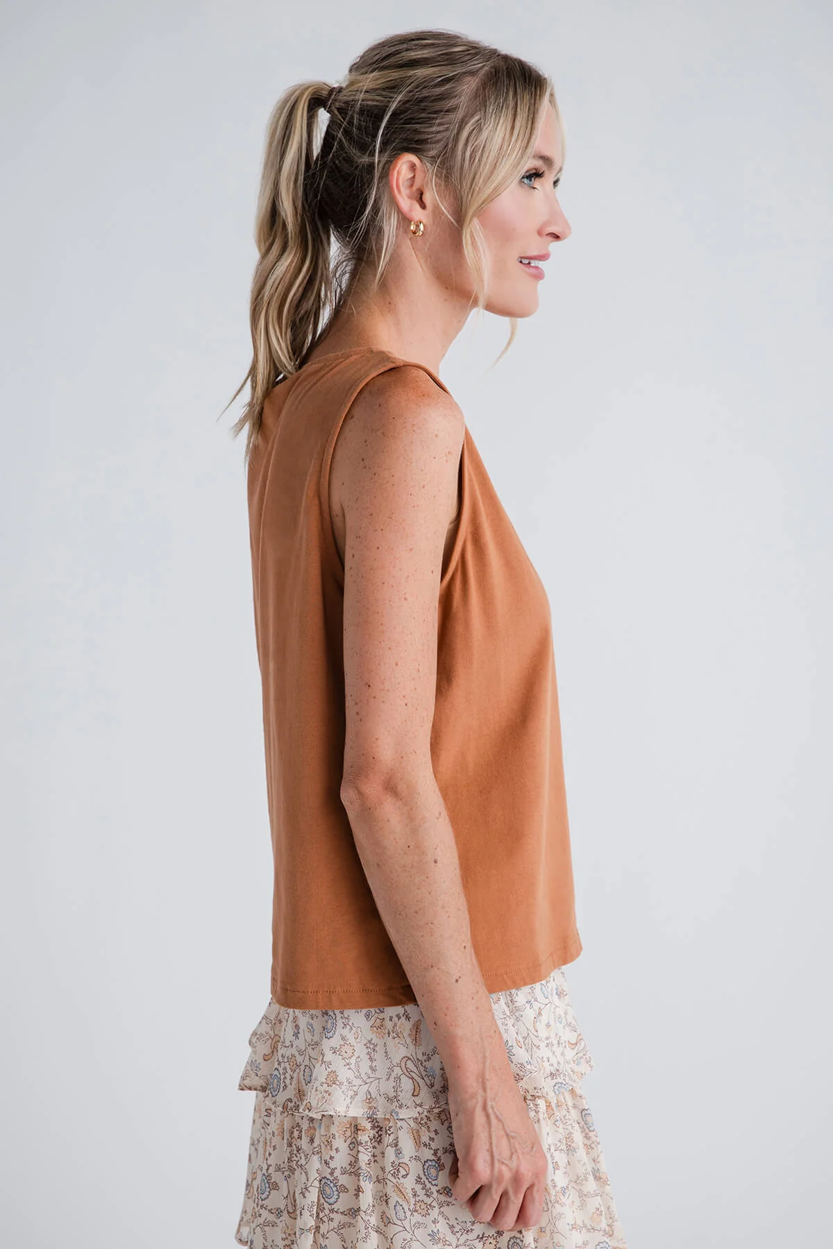 How soft is our Wishlist Button Up Relaxed Crop Knit Tank Top? The limit simply does not exist. The button details and soft fabric steal the show for us, so worn with a skirt to the family affair or with some denim for a casual bite, you can't say no to this top.